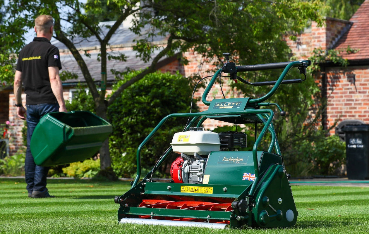 On expansive lawns, a large capacity cylinder mower such as the Allett Buckingham 30H, applies an even downward pressure as it moves across the lawn’s surface, leaving no wheel marks while minimising compaction.
