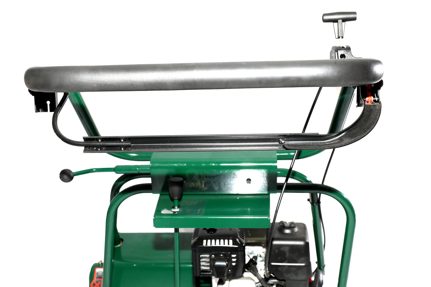 The Buckingham 24H with 24” (61cm) cut is equipped with a six-bladed precision cutting cylinder delivering 73 cuts per metre. It features a 196cc Honda four-stroke single-cylinder petrol engine at the heart of the self-propelled mower, driving the rear-roller as well as the cutting action, and also feature infinitely variable micro cutting height adjustment from 3/16 to 1 3/8 (5mm-35mm).