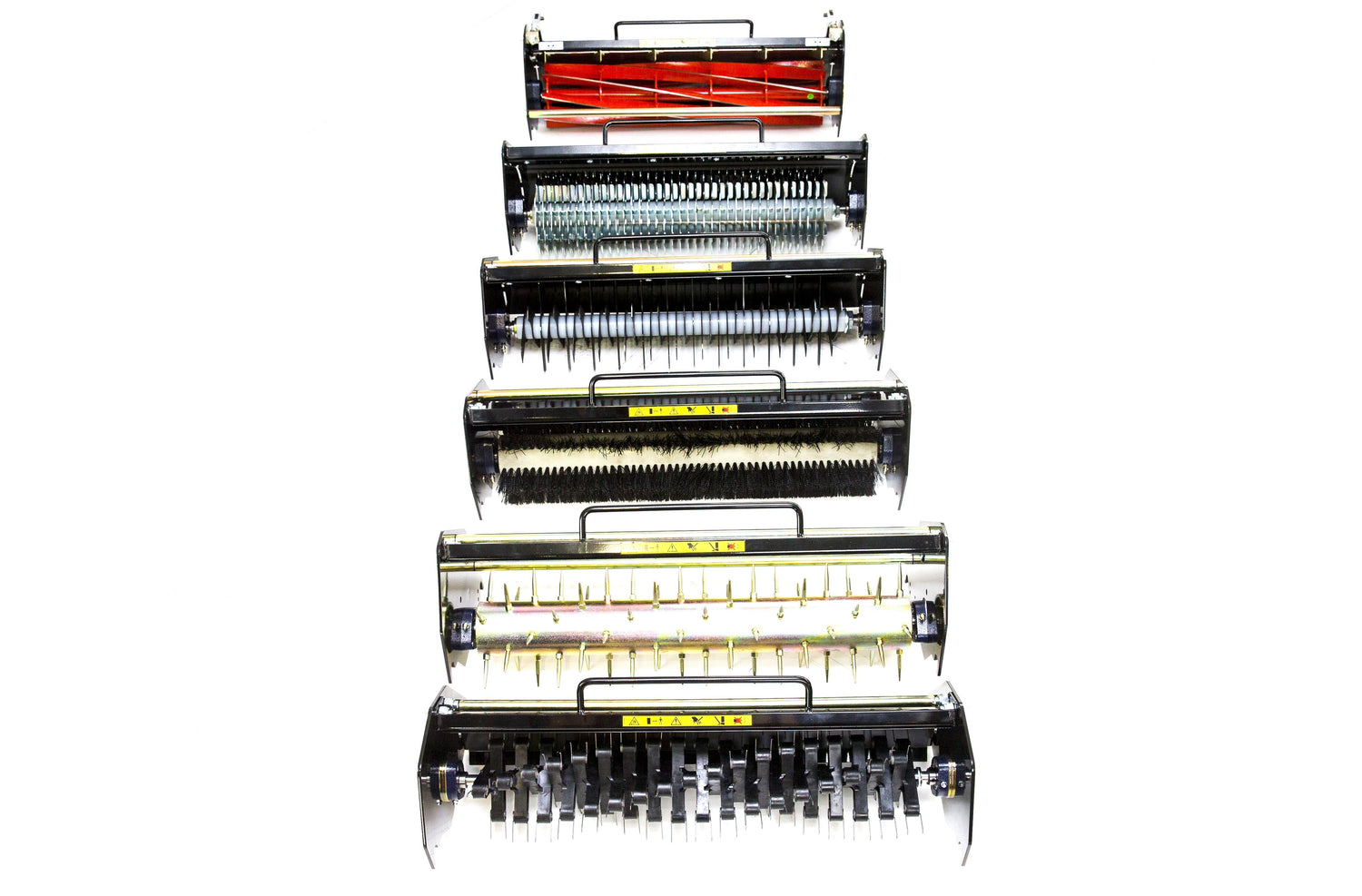 Each purpose-designed, easy-change, C-Range cartridge head becomes an integral part of the machine, enabling tasks ranging from fine turf mowing, verti-cutting and slitting to brushing, scarifying and sorrel rolling to be carried out successfully and without compromise.
