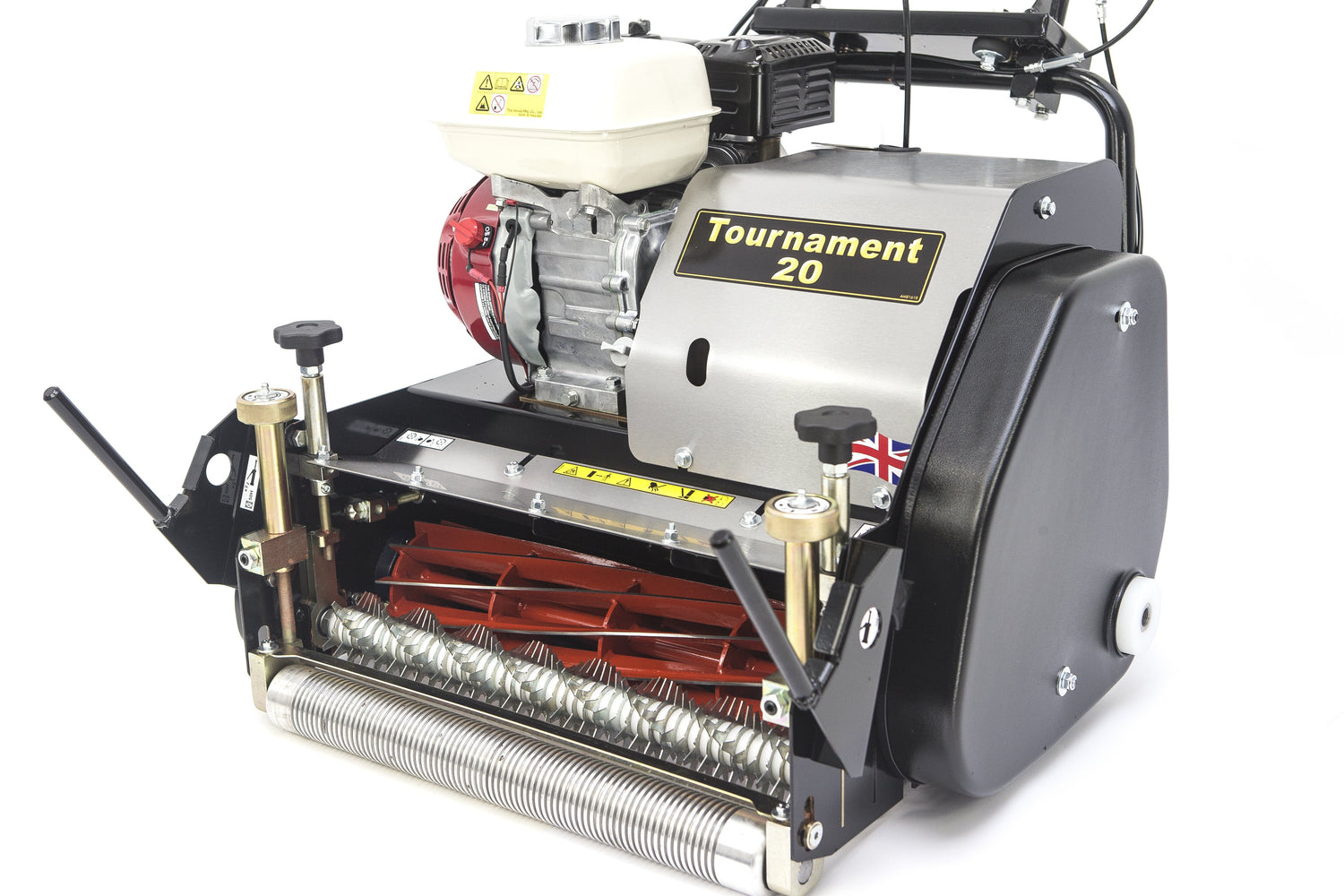 Easy to set and operate, the Tournament 20 is equipped with an integral powered turf groomer that uses thin, closely spaced vertical blades to lift lateral grasses and “runners” immediately in front of the 10-bladed cutting cylinder. The result is a consistent level, true and even finish, meeting the exacting requirements of sports such as bowls, cricket and golf where speed and run of the ball are key.